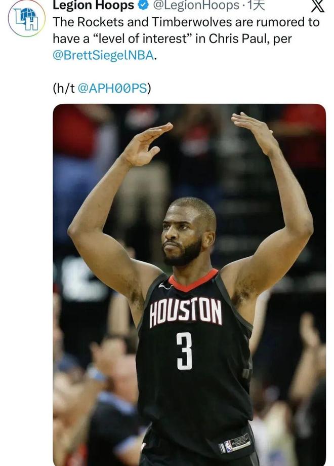 别看保罗40岁了且本赛季没有存在感,至今场均才得到2.9分1.8板3.3助,可不愁接盘侠,火箭和森林狼等队均有意将他收入麾下。
