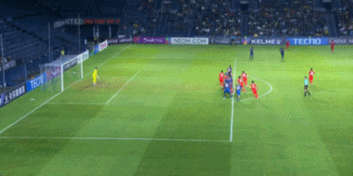 下半场,上海海港防线再度丢球,源自失误造成。第65分钟,武里南联角球开到后点,门将颜骏凌出击扑空,对方球员古德打空门得手,上海海港0-2落后。