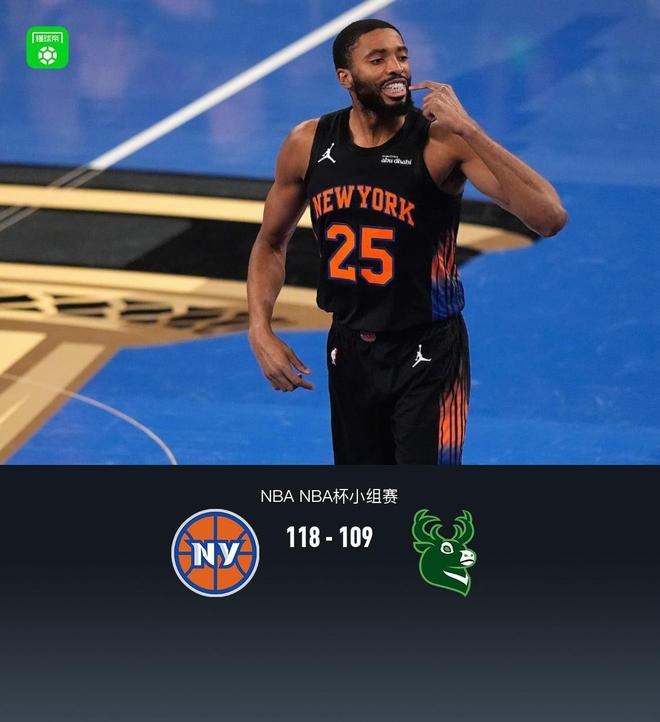 尼克斯118-109战胜雄鹿晋级杯赛淘汰赛,布伦森37分,字母空砍30+15+8